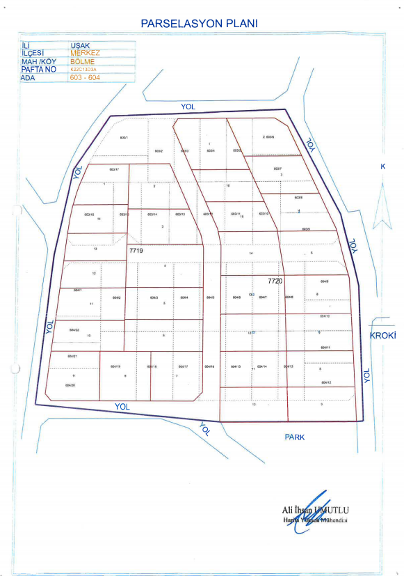 Hacıkadem ve Yeşilkarağaç Mahalleleri muhtelif ada ve parsellerde, 18. Madde Uygulaması Parselasyon Planı Askı İlanı