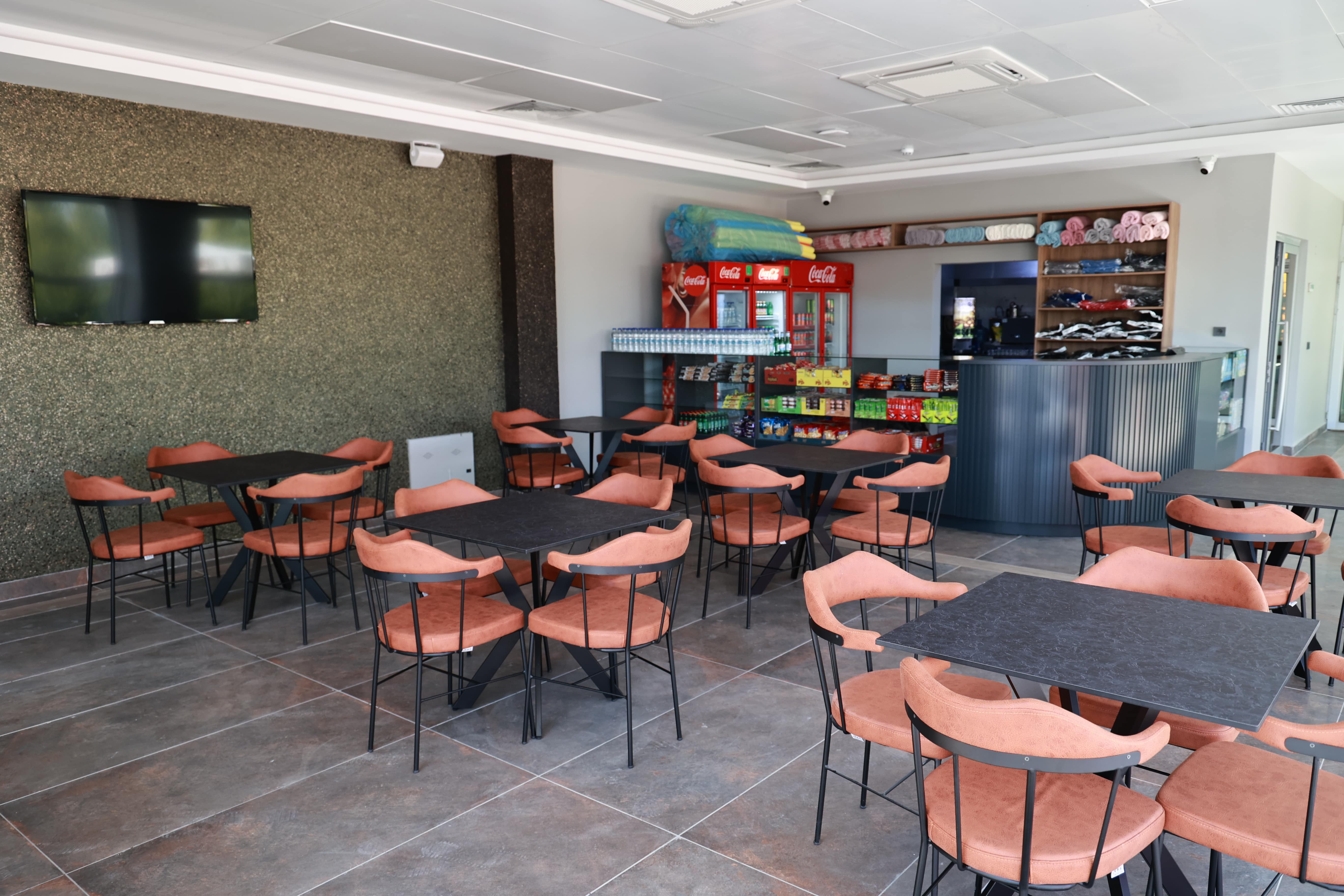 Not: Pazartesi günleri genel temizlik nedeniyle kapalı olan kafeteryamız, diğer 6 gün boyunca sabah 08:00'den gece 22:00'ye kadar hizmet vermektedir. Kafeteryamızda, vatandaşlarımıza fast food ürünleri (hamburger, tost, patates cipsi vb.) ve sıcak ile soğuk içecekler (çay, ayran, kola, gazoz, maden suyu vb.) sunulmaktadır.