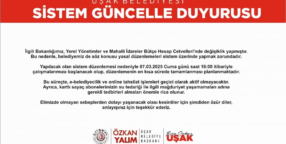 Sistem Güncelleme Duyurusu