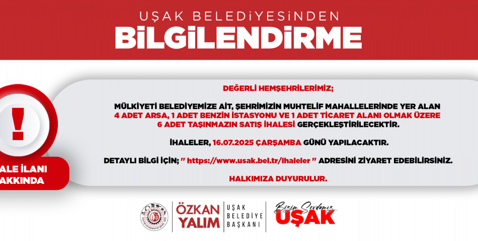 6 ADET TAŞINMAZIN SATIŞ İHALESİ HAKKINDA