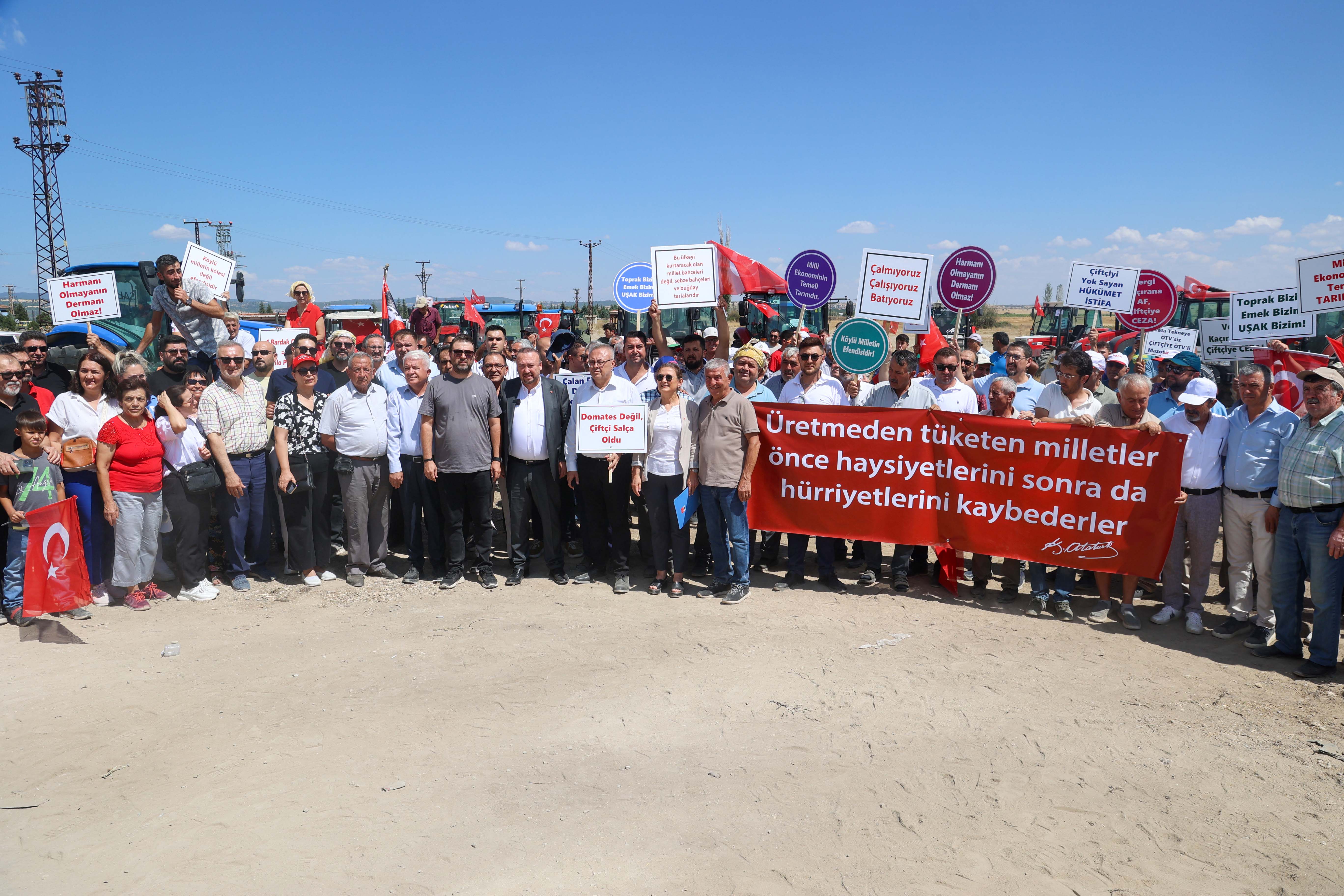 Uşaklı çiftçiler artan maliyetleri ve mazot fiyatlarını protesto etmek amacıyla bugün büyük bir eylem düzenledi. Yüzlerce çiftçinin ve traktörün yer aldığı ‘’Büyük Çiftçi Buluşması’’ kapsamında konuşan Uşak Belediye Başkanı Özkan Yalım, çiftçiye kırmızı mazot verilmesi gerektiğinin altını çizdi.