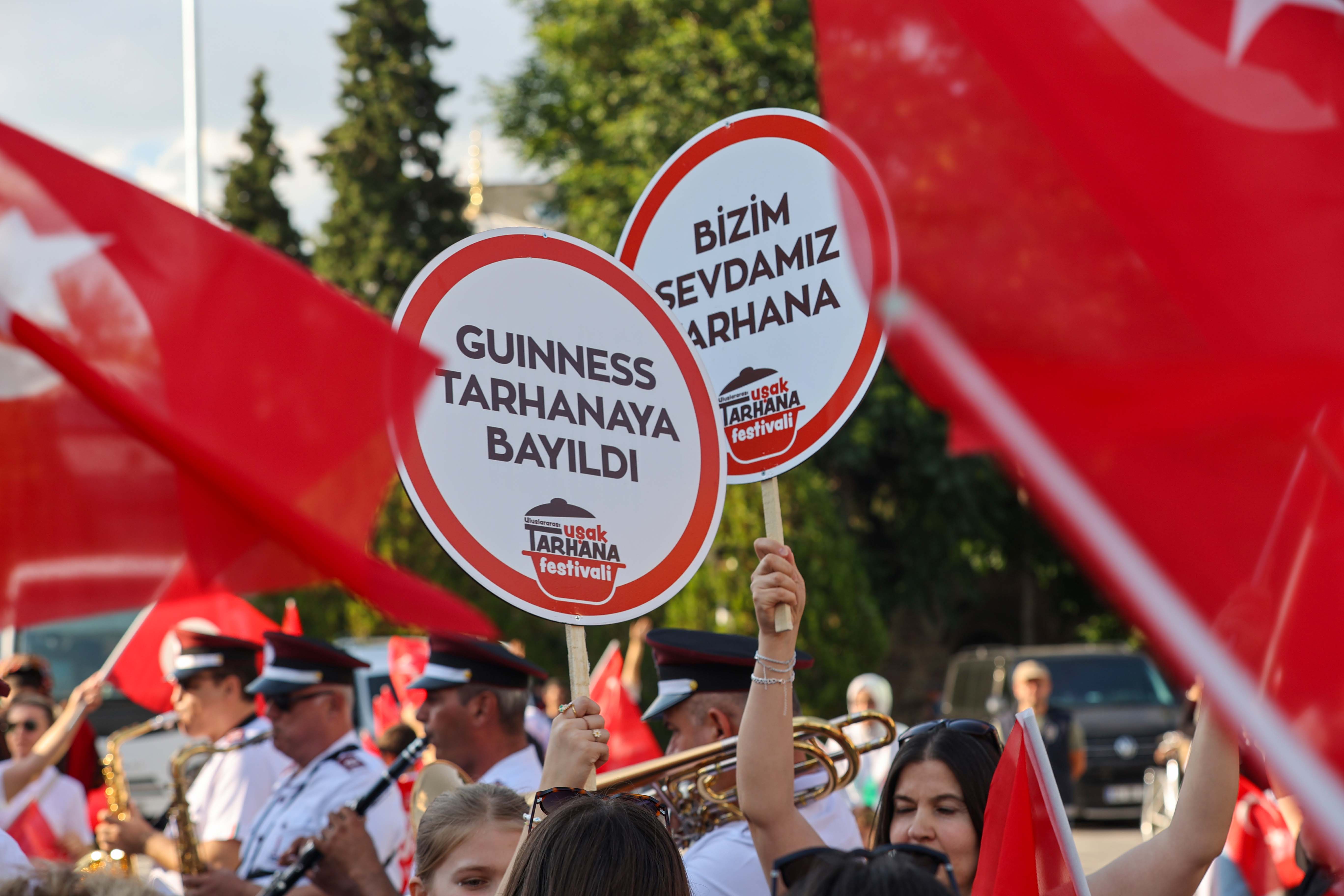 Coşkulu kortejde Uşak Belediye Başkanı Özkan Yalım’ın yanı sıra diğer protokol üyeleri ve ünlü isimlerde yer aldı. Kalabalığın sel olduğu yürüyüşün ritmini tutanlar ise İzmir Karşıyaka Bandosu oldu. Festivalin açılışını gerçekleştiren korteje motor grupları, model araçlar, dernekler ve dev Türk Bayrağı da eşlik etti. Kortejin ardından festival alanında toplanan vatandaşlara seslenen Uşak Belediye Başkanı Özkan Yalım; “Bu kültür hepimizin kültürü. Bu kültür, atalarımızdan bize kalan en önemli miras, bu toprakların besinleri ile yapılan ve sofralarımıza gelen şifa. Düzenlediğimiz festival sayesinde mirasımız olan tarhanamızı tüm dünyaya duyuracağız“ dedi.