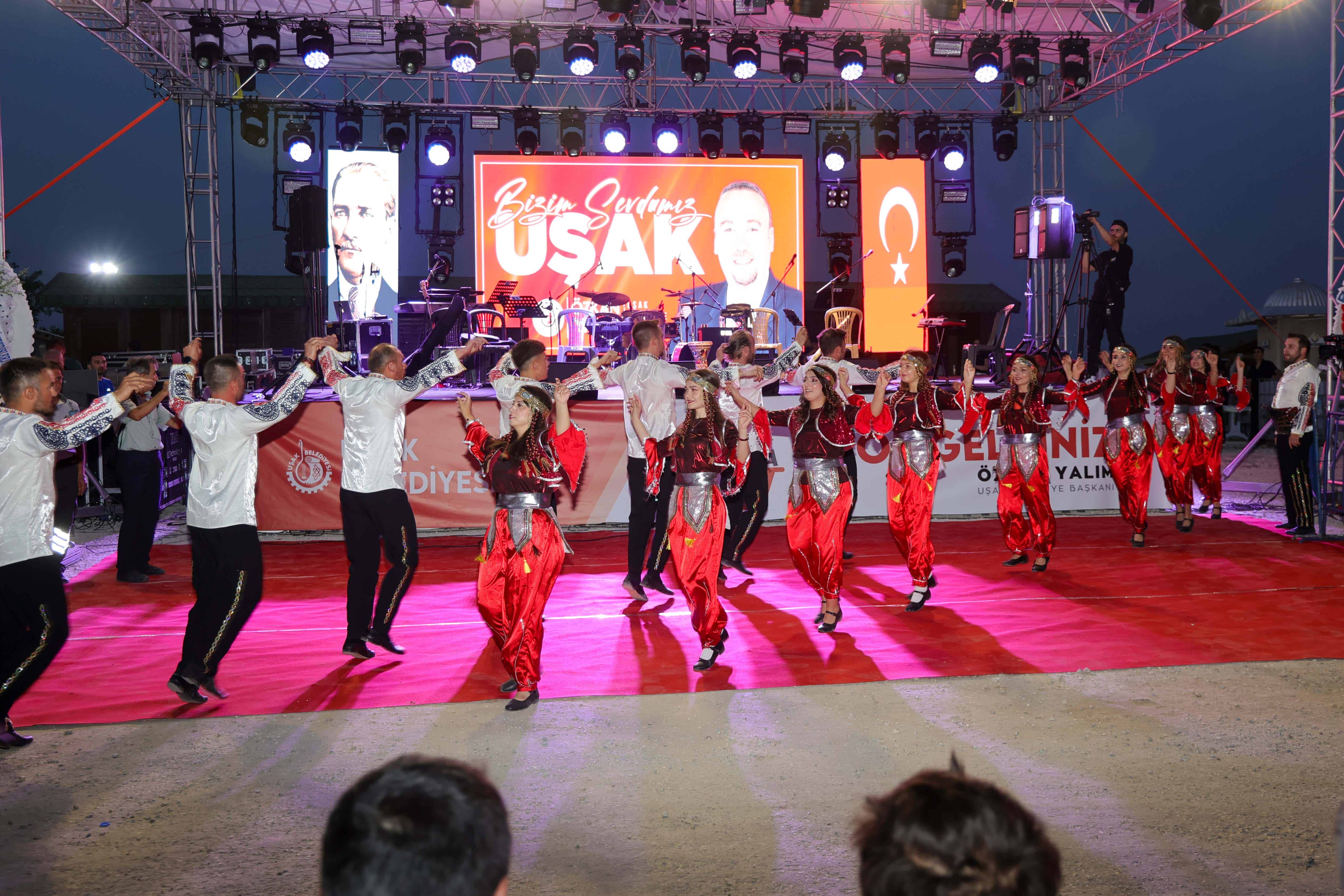 Renkli gösterilerin ardından yerel sanatçılarımız Barış Dönmez, Faik Ceylan, Naim akbaş ve Alim Toker sahne alarak kültürümüze has kuşaklardır söylenen güzel türküleriyle festival severleri coşturdu. Gecenin ilerleyen saatlerinde ise Uşaklı sevilen sanatçı Ufuk Çakır ve sesiyle dinleyenleri büyüleyen ünlü isim Türkü Akbayram, birbirinden renkli repertuarları ve muhteşem sahne performansları ile geceye damgasını vurdu.