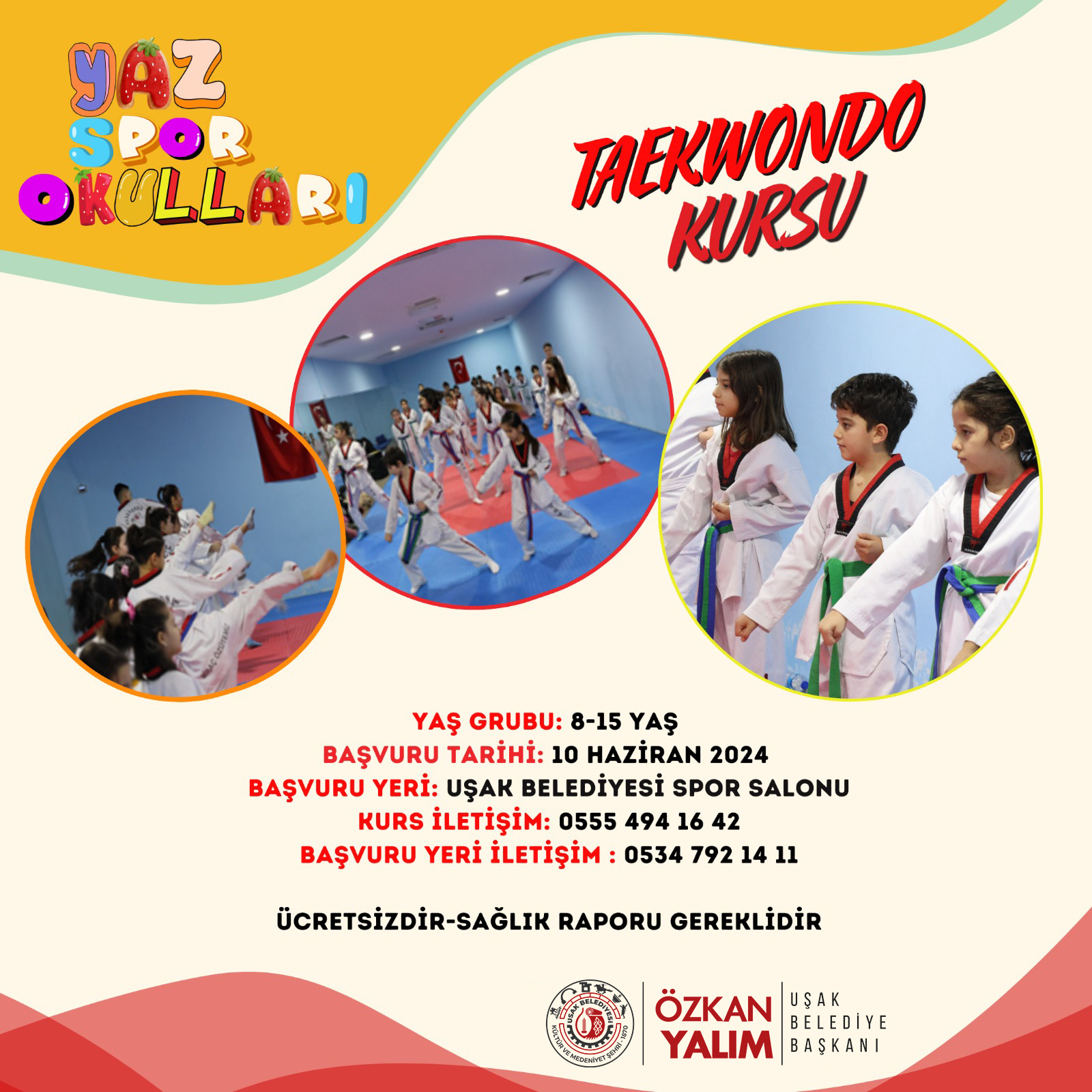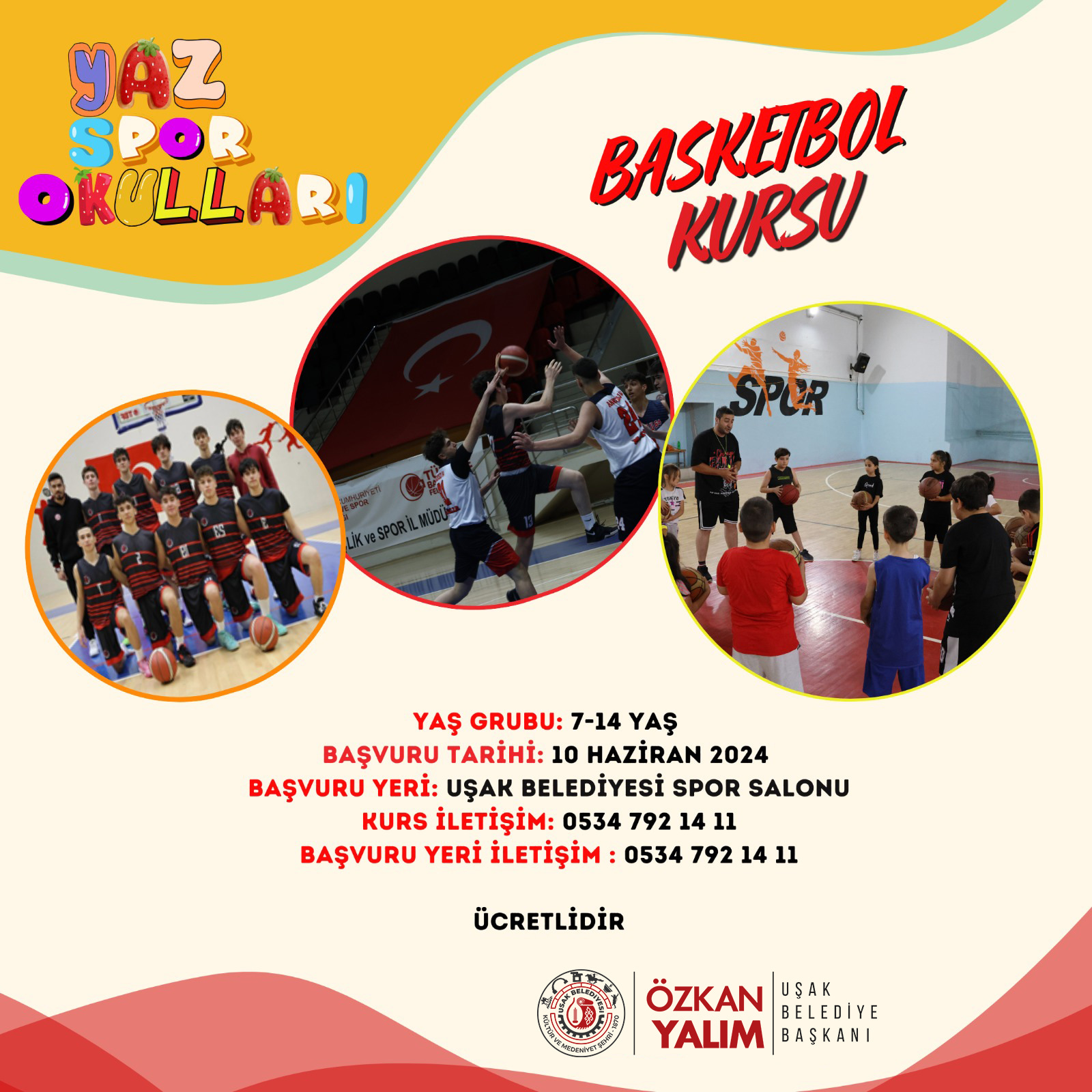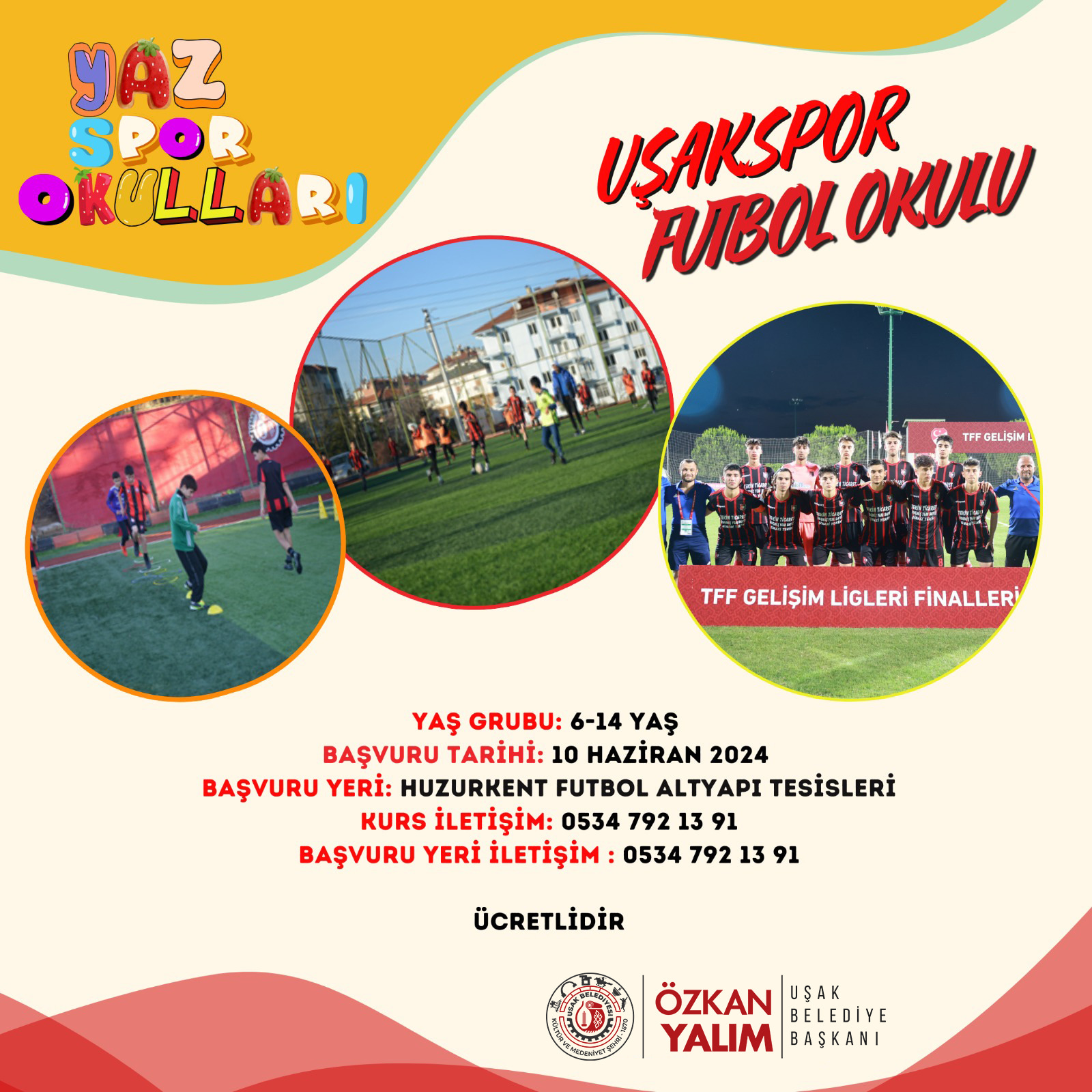 Yaz Spor Okullarından faydalanmak isteyen vatandaşlarımız başvuru için 0534 792 14 11 numaralı telefonu arayabilecekler.